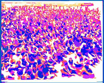 Se encendieron fogatas y porros. La música iba y venía. Habían pequeños conciertos entre la gente tirada abajo. Al amanecer hubo el momento hermoso en el que la bajada del trip y la salida del sol se mezclan en un semisueño cansado, tranquilo y emotivo. Family, con su avión especial y sus miles de vatios tardaba en llegar. La gente empezó a inquietarse, la gente que esperaba al ídolo. Los grupos de triposos se lanzaron a hablar. Nada de Family, que se vayan a la mierda con sus aparatos. Nosotros nos lo pasamos la mar de bien sin ellos. Asambleas, discusiones. Cuando llegó Family más de la mitad de la gente había decidido boicotearlos y empezaron a largarse cuando empezaban a tocar. Algunas botellas de cerveza y muchos objetos llovieron sobre el escenario. Family se negaba a tocar en aquellas condiciones. Yo me fui carcajeándome suavemente, terriblemente cansado, andando despacio, muy despacio. los naturales debía pensar: ahora si que parecen hippies. Y en cierto modo era verdad, al salir éramos más hippies que al entrar.