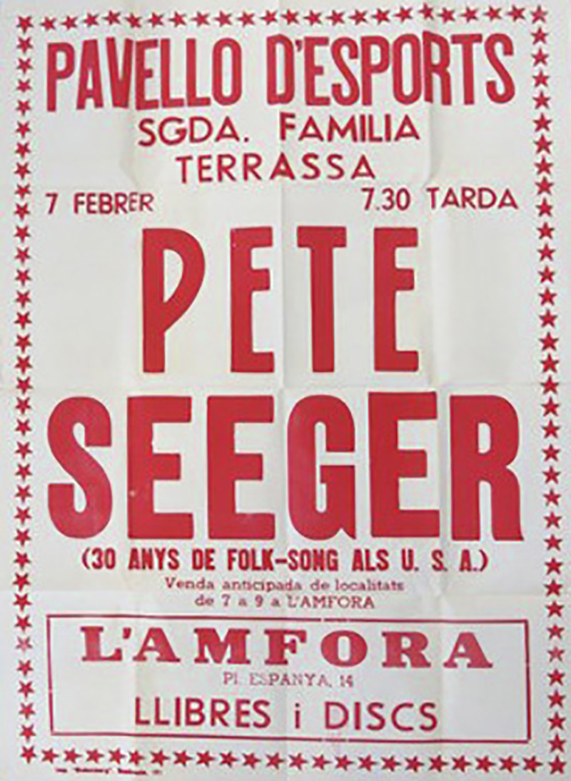 En aquest context, el cantautor Raimon ens planteja muntar un recital amb el folksinger Pete Seeger, fruit d’una proposta que li havia fet en una recent estada seva als EUA, on va dur a terme alguns recitals al seu costat. I aquí neix, ara sí ara no, el recital a Terrassa -se’n planejava un al País Basc, a Sant Sebastià, i també a Andalusia, a Sevilla, i a Catalunya, on hi havia dues possibilitats, Barcelona o Terrassa, fins que al llarg de deu dies la proposta finalment es concreta i, a cuitacorrents, som-hi. Assumeix l’acte Cáritas de la parròquia de Sant Llorenç, vinculada amb el Comitè abans esmentat. No en va molts dels empresonats eren obrers d’aquell barri i d’altres de Terrassa i de fora, i coneixien, sabien i patien les necessitats de les seves famílies. Val a dir que allà hi havia un equip de capellans, i de laiques i laics, molt postconciliars i compromesos, fet que es donava en algunes altres parròquies perifèriques i populars, com la de Sant Cristòfor, a Ca n’Anglada.