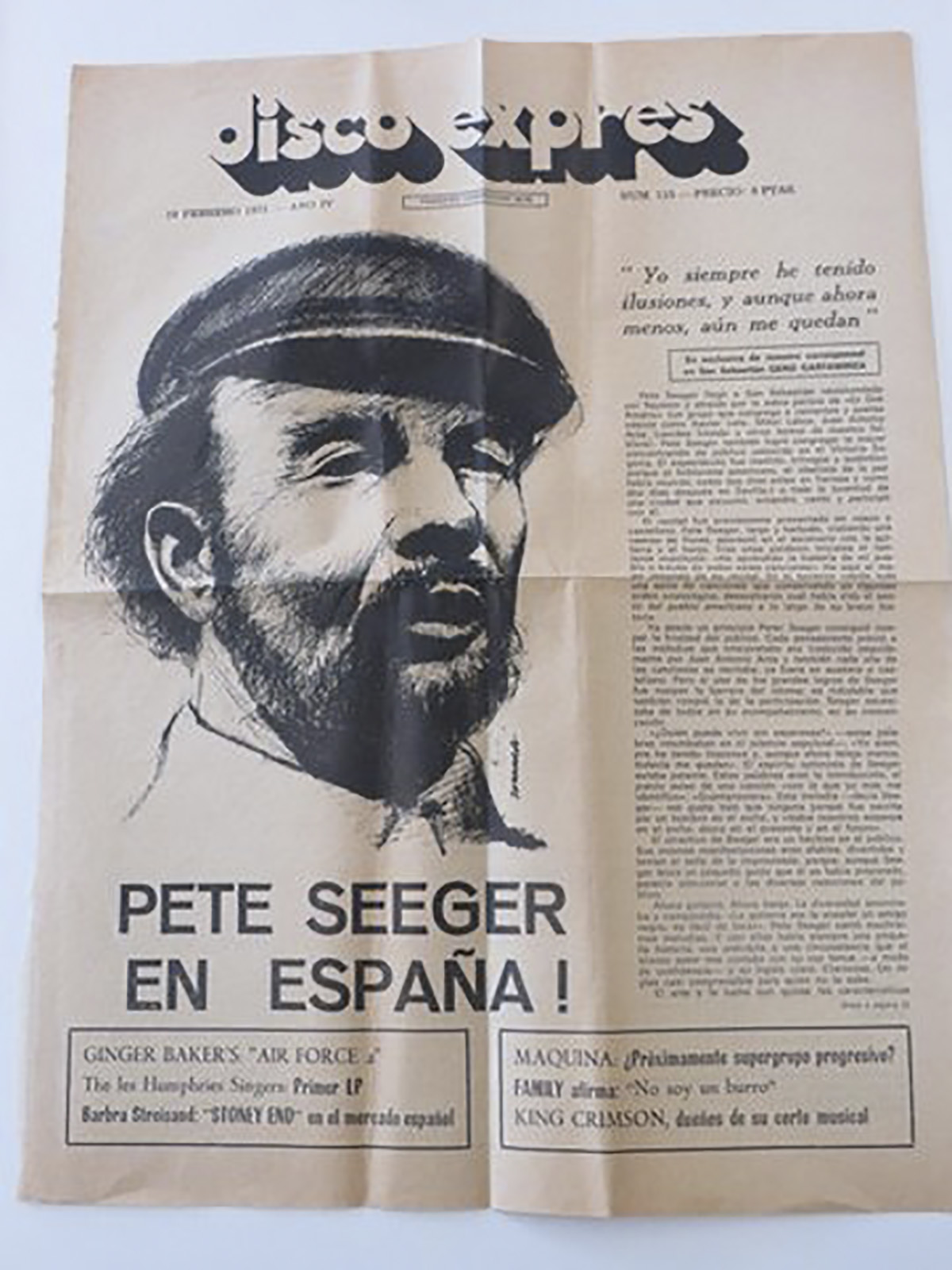 El recital transcorregué sense més incidents que el de l’accés al pavelló. Algun vidre de la porta d’accés trencat i cap detingut, tot un èxit podem dir. La premsa també se’n feu ampli ressò i avui són molts els d’aquella generació que recorden l’acte com un espai de llibertat emotiu i vibrant. Raimon va fer una breu introducció i tot seguit va aparèixer Pete Seeger acompanyat de Jordi Llopart, estudiant d’econòmiques que havia residit als EUA i que va fer de traductor de les introduccions que feia Pete. Inicià el recital amb “Guantanamera”, que “va ser escrita per un home a l’exili; tots nosaltres estem a l’exili ara, en el present i en el futur”, va dir en Pete -oracle i profecia? Seguí amb “Wimoweh”, “El desembre congelat”, “Little boxes”, “Last train to Nuremberg”…, i acabà amb el “We Shall Overcome”. Una trentena de cançons d’arreu del món van ser cantades, moltes corejades pel públic, un respir de llibertat en aquella llarga dictadura de la qual encara no ens hem desempallegat.