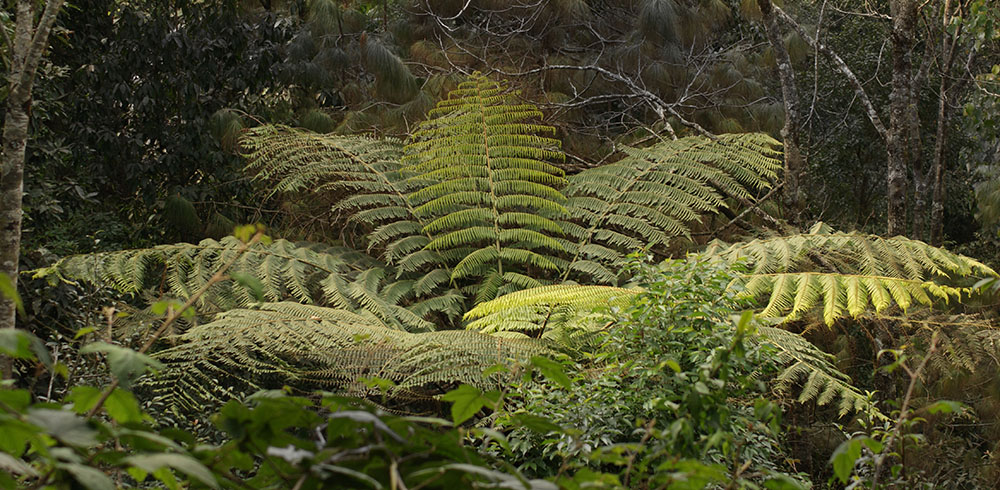En un lloc el camí s’eixamplava formant com una placa petita on hi havia un gran banyan, un arbre sagrat i colossal, d’arrels aèries que pengen de les branques i s’arrapen a terra. Per la soca, formada per immensos troncs que es trenaven fent plataformes, es podia passejar o construir-hi una caseta.