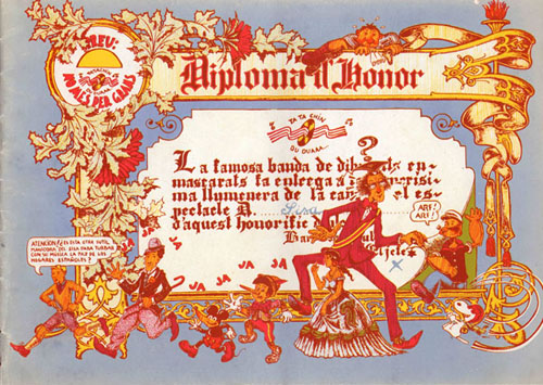 I aquí tenim el Diploma d’Honor amb la lletra de les cançons d’en Jaume Sisa il·lustrades en còmix. Imprès a Gráficas Dante, porta un ISBN de l’any 1974. Algunes il·lustracions estan signades per Joan Ballester, Pepichek, Mariscal, Guillem Izquierdo, el Farry i Montesol.