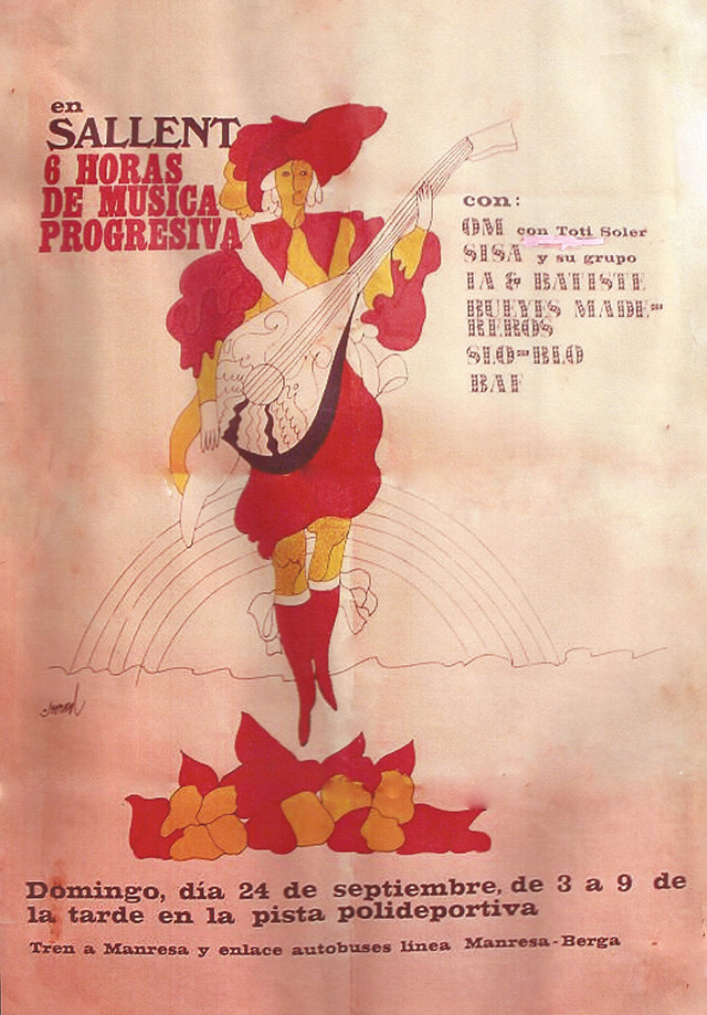 Heus aquí que gairebé sense mitjans però carregats de fe cega en els músics van preparar les 6 Hores de Música Progressiva de Sallent. El cartell més la difusió que va fer Josep Maria Pallardó des de “El Clan de la Una” de Ràdio Joventut i en Ferran Borràs des de la revista “Mundo Joven” van ajudar a divulgar l’esdeveniment. El boca a boca va fer la resta en una època en que per anar a Sallent calia agafar el tren fins a Manresa i després un bus o fer ho a dit a peu o en bicicleta: Gairebé un miler de persones es van aplegar a Sallent aquella tarda de setembre constituint un èxit de públic que és recordat actualment com un festival entranyable pels que hi vam assistir i particularment entre els músics que hi van tocar.