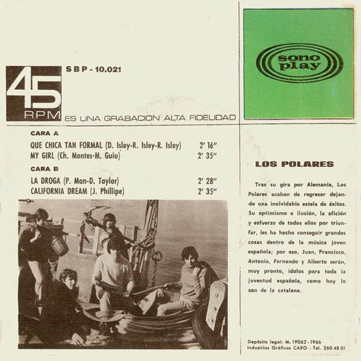 Los Polares, grup originari de Masnou, que en 1966 van gravar una versió del tema “LSD”, dels Pretty Things, la qual van titular “La droga”.