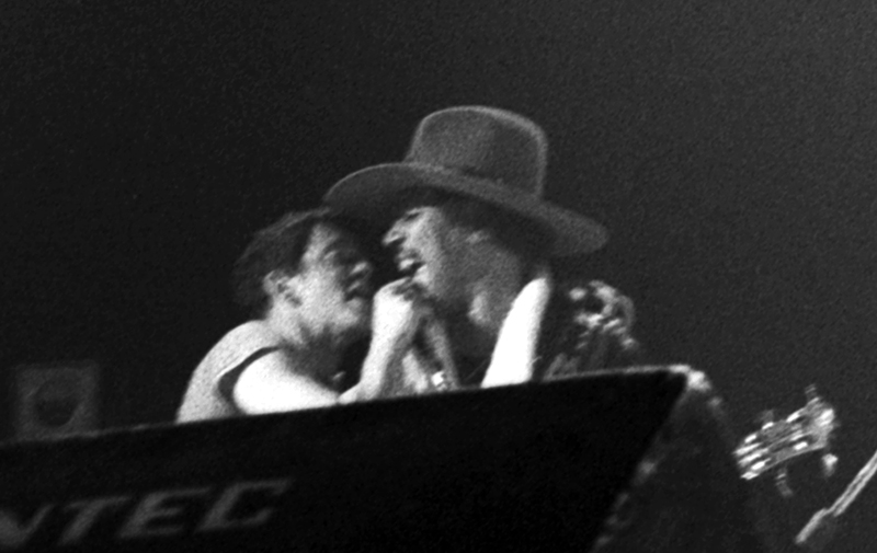 Aquestes fotografies no són professionals. Les vaig fer amb una reflex Fuji-S-710 i objectiu de 50 mm sense flash (confiava en les llums d’escena). No les havia escanejat totes fins ara, que disposo de temps i equip. En aquells temps es podien fer fotos gairebé davant d’escenari (cas Iggy Pop). Al Palau d’Esports havia una mica més de distància i d’ací la pèrdua de focus. Algunes estan bastant bé i d’altres no, però el tall del moment és interessant. A més, tant en el moment de disparar com de revelar el negatiu, no em trobava en les condicions òptimes per aquesta feina tan acurada… No recordo gairebé res d’aquell concerts i no puc aportar cap anècdota o història. L’hauria d’inventar, i millor no remenar les cireres…