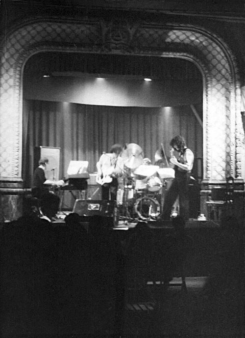 Els músics són, d’esquerra a dreta: Alan Gowen, John Greaves, Pip Pyle i Phil Miller…tot i que no es veuen molt bé…segur que algú de la zona recorda aquells concerts. No recordo la data de la gira, però deuria ser pel 79 més o menys…