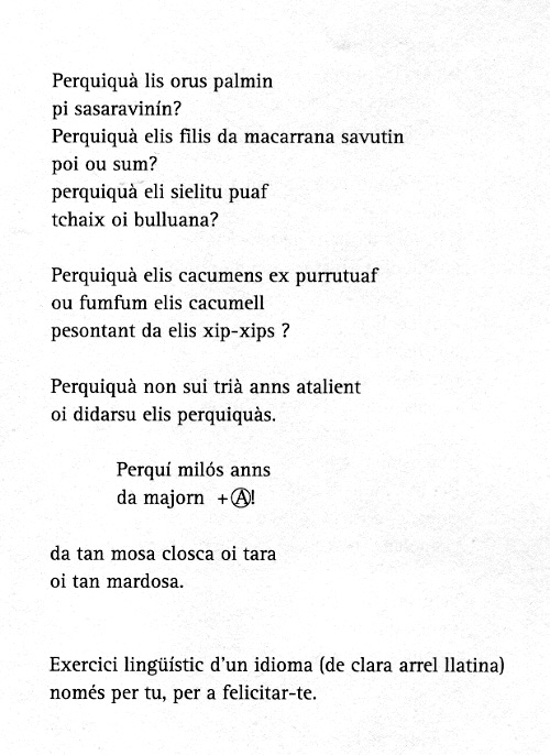 El poemari aplega poemes i dibuixos del Pau Maragall, de Pere Marcilla, d’Albert Subirats i dibuixos de Quique Conde i de C. Cerón. Alguns dels poemes havien vist prèviament la llum a les revistes Ampolla, Muerte de Narciso, i al Full de l’Artesà de Gràcia. Us oferim un petit tast de tot el que hi podeu trobar.