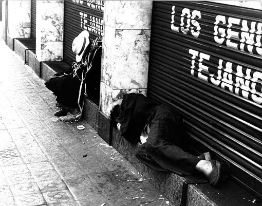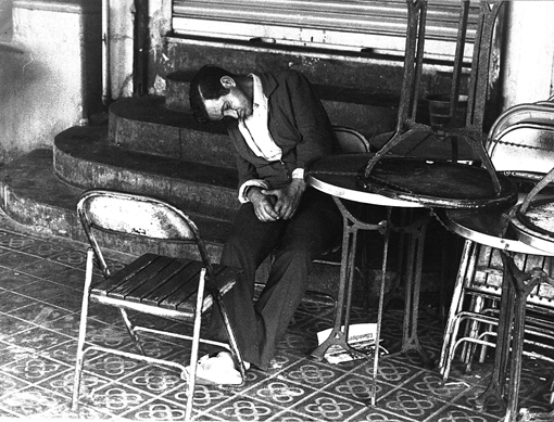 Fotos tomadas en la madrugada de Sant Joan en el 79. La del tipo que parece encadenado a una mesa es el la puerta del Zurich. La mascada en plaza Catalunya. La primera en una tienda de tejanos bajando Ramblas a la derecha. Y la última en el puerto, en el rincón donde atracaban los barcos que salían para Ibiza.