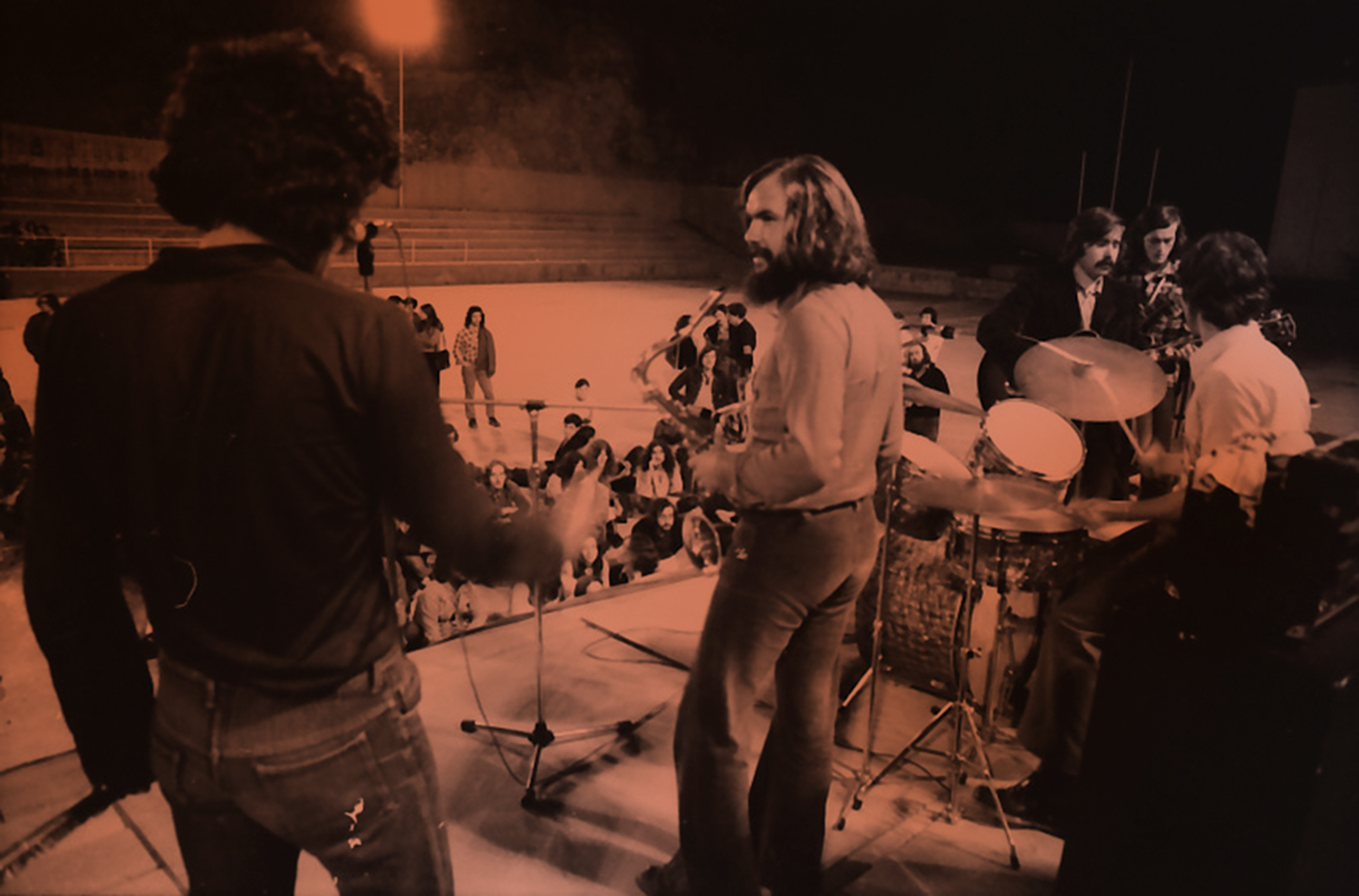 Fotografies de l’actuació de Slo-Blo a les 6 Hores de Música Progresiva de Sallent, el 1972. Autor Albert Climent